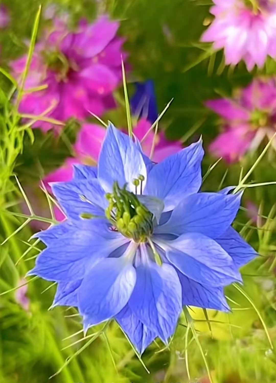 品種:黑種草 拉丁名:Nigella damascena Linn. 別名:黑子草 千粒重:400粒/克 株高:30-40CM 顏色:藍|粉白|混色 播量:2.5-3.0克/平米 花期:5-7月 習性:喜溫暖、濕潤和陽光充足環(huán)境。較耐寒,不耐高溫和多濕,忌干旱。春播為主,南方地區(qū)可秋播。適宜生長溫度15-30℃。 園林用途:黑種草花型呈奇異的復瓣效果,花色淡雅但花色飽滿,作為花壇、花境、城市花園、社區(qū)綠化效果尤佳。